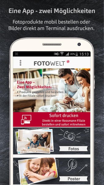 - مجانًا: يمكن تنزيل تطبيق Rossmann Fotowelt المجاني من متجر Google Play. إنه أفضل تطبيق للصور ، والذي يوفر طريقتين لصنع منتجات الصور باستخدام صورك وطلبها: